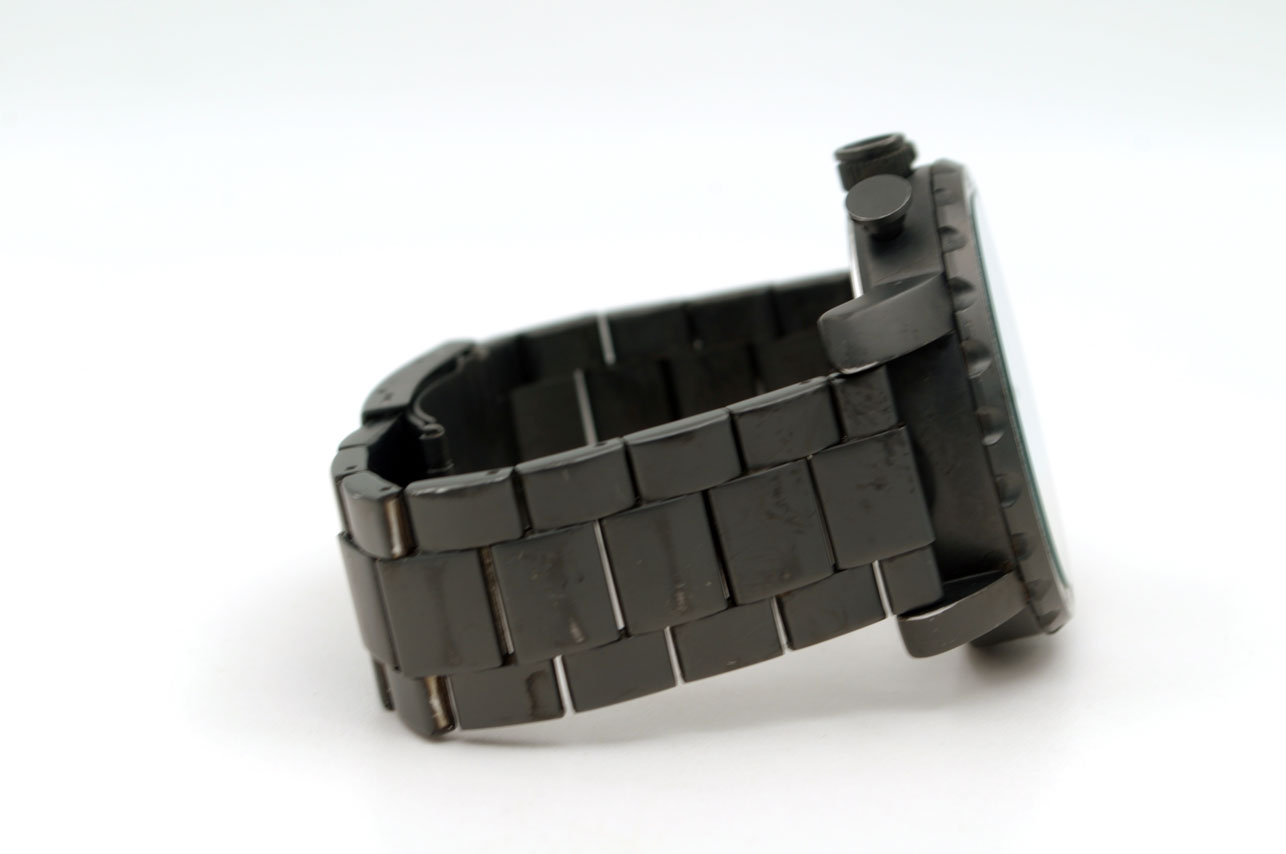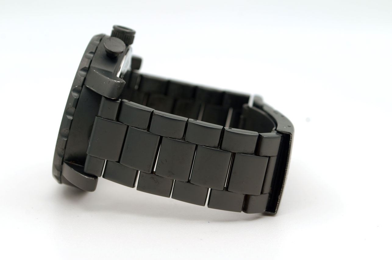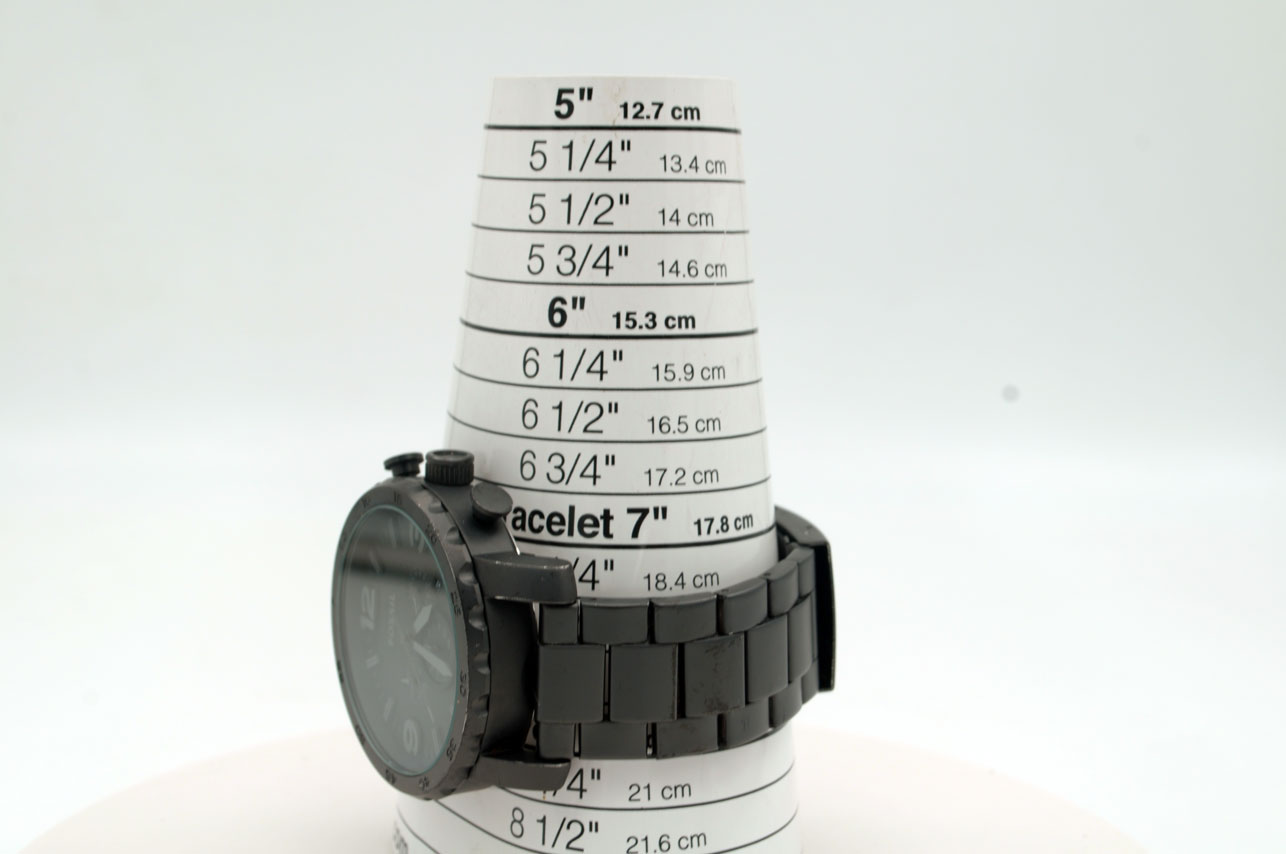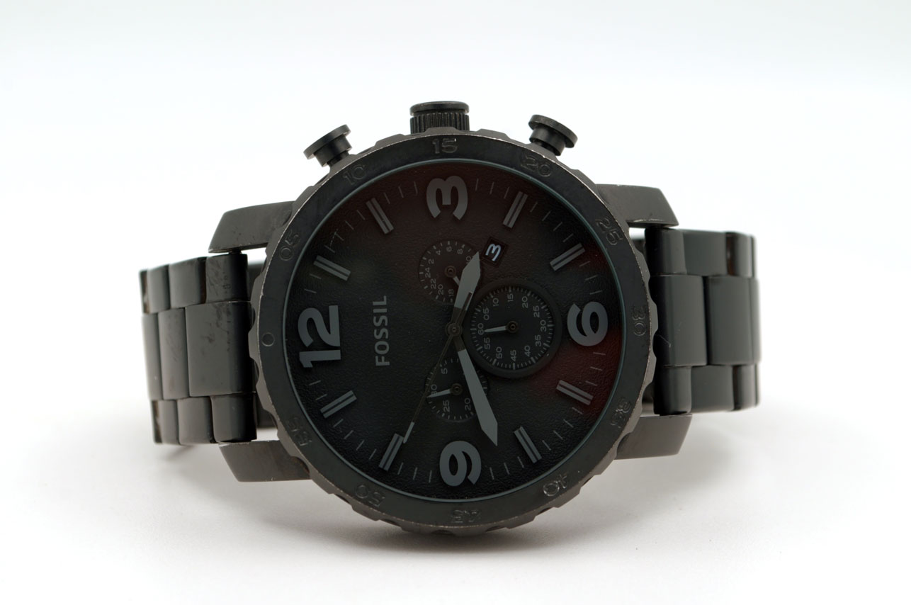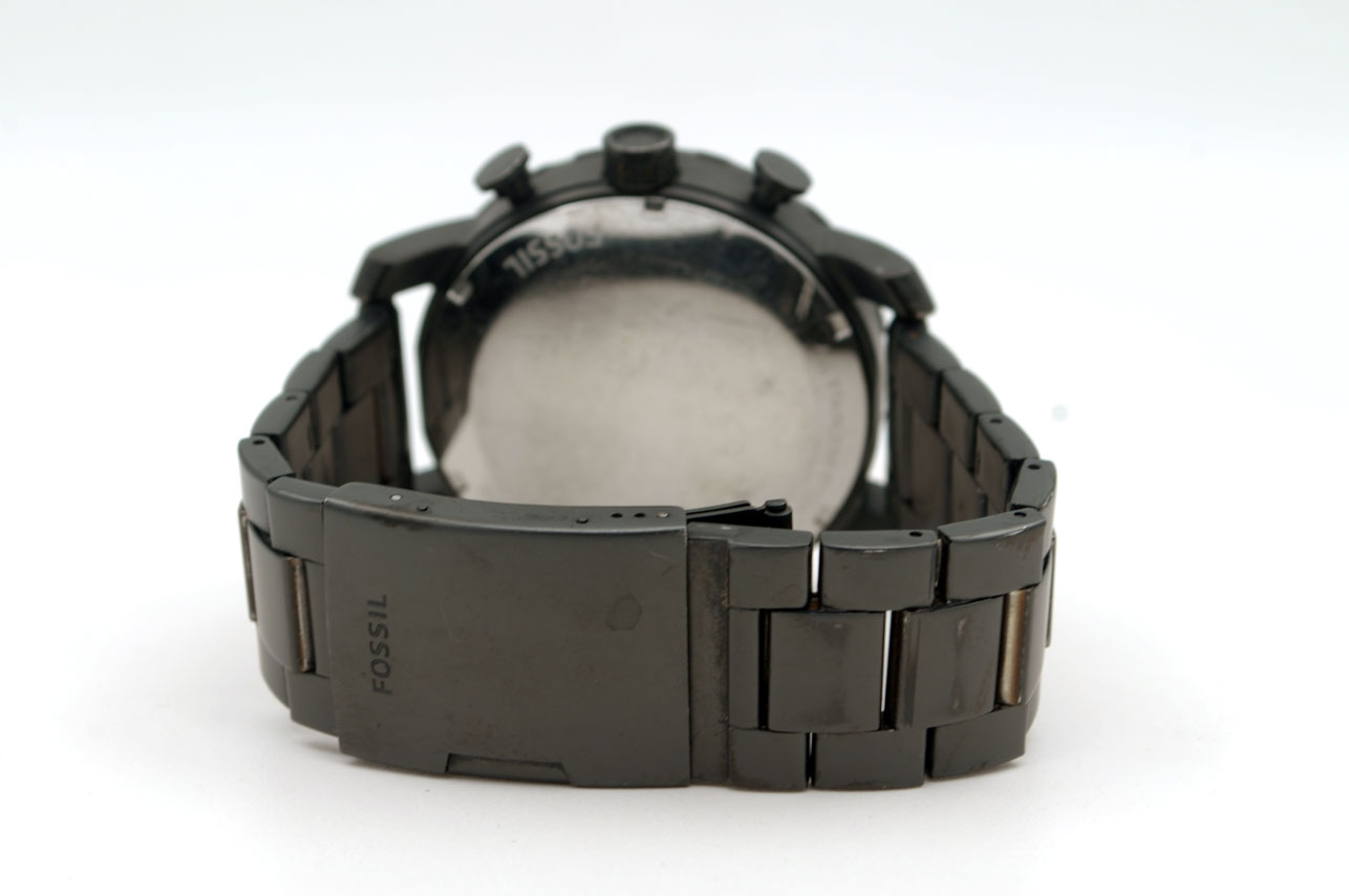 Fossil JR-1401 para caballero de 50mm grande, todo de acero inoxidable con cubierta PVD negra. Maquina cronografo de 30 mins, dial negro mate con fecha.
