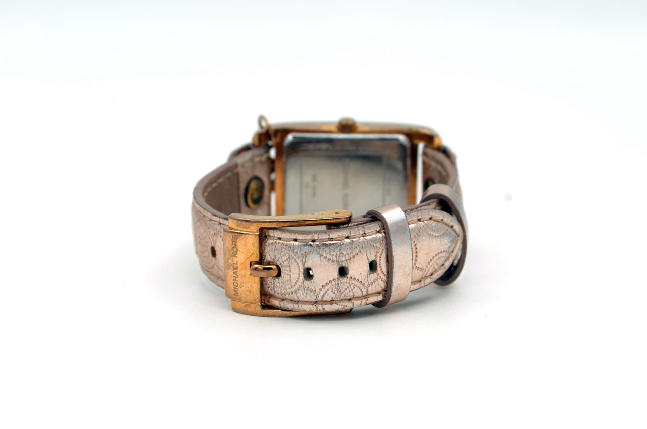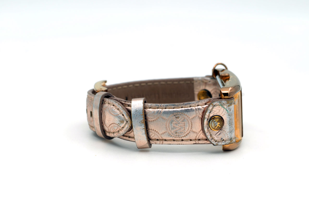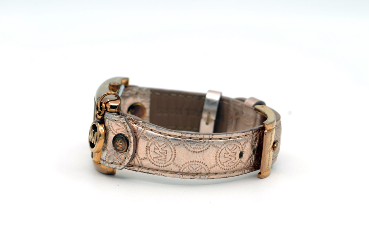 Michael Kors para dama anodizado en dorado Gold Rose con faja de cuero.