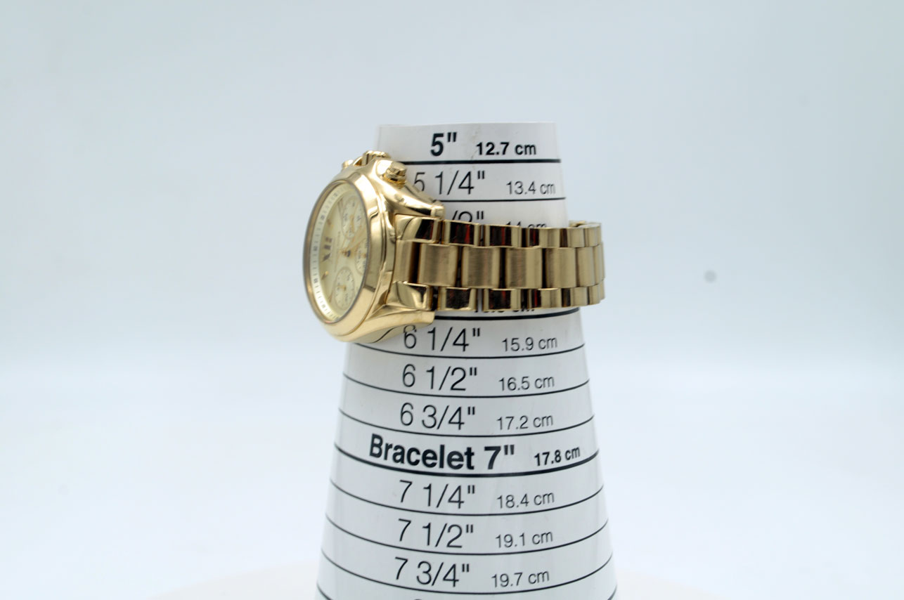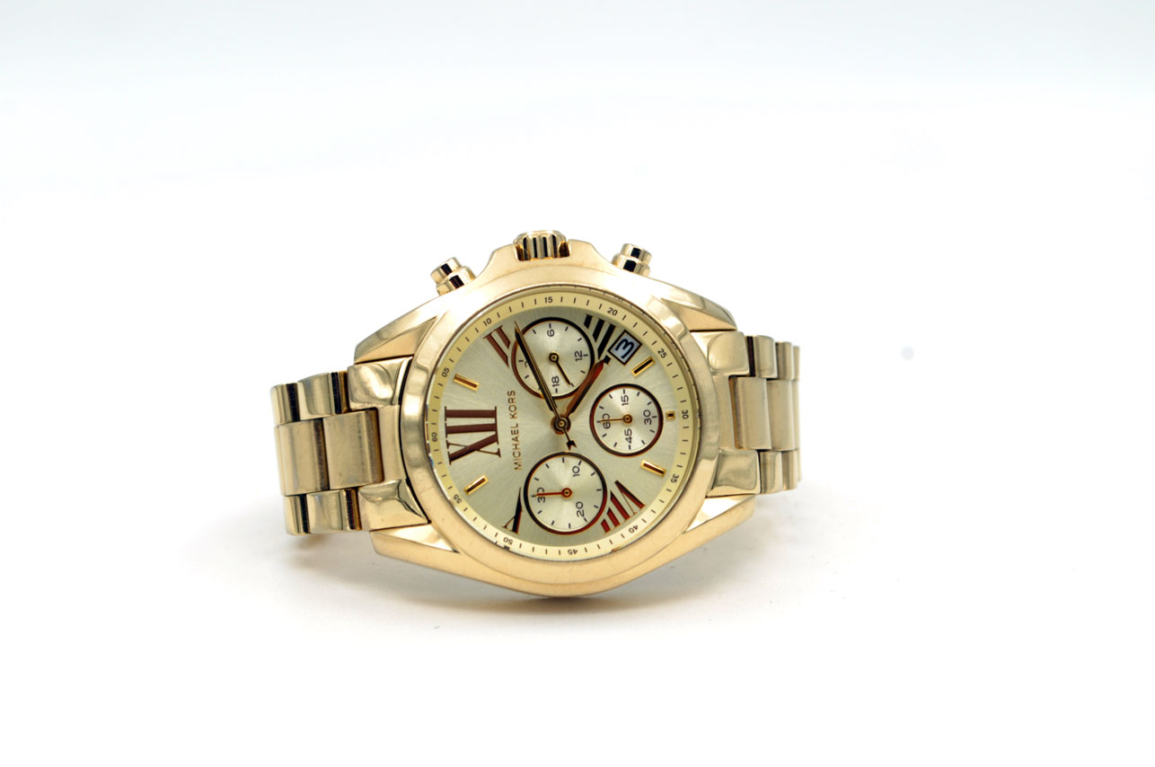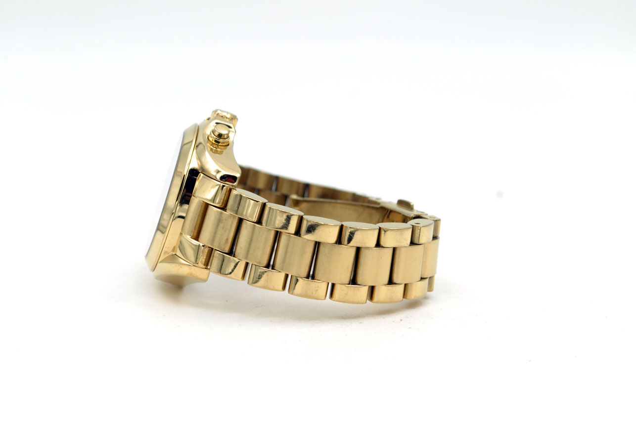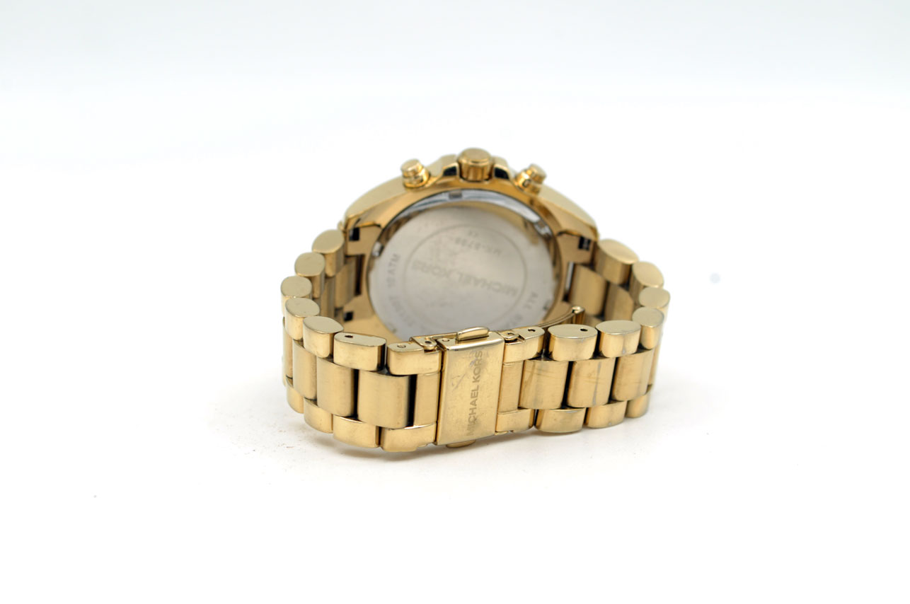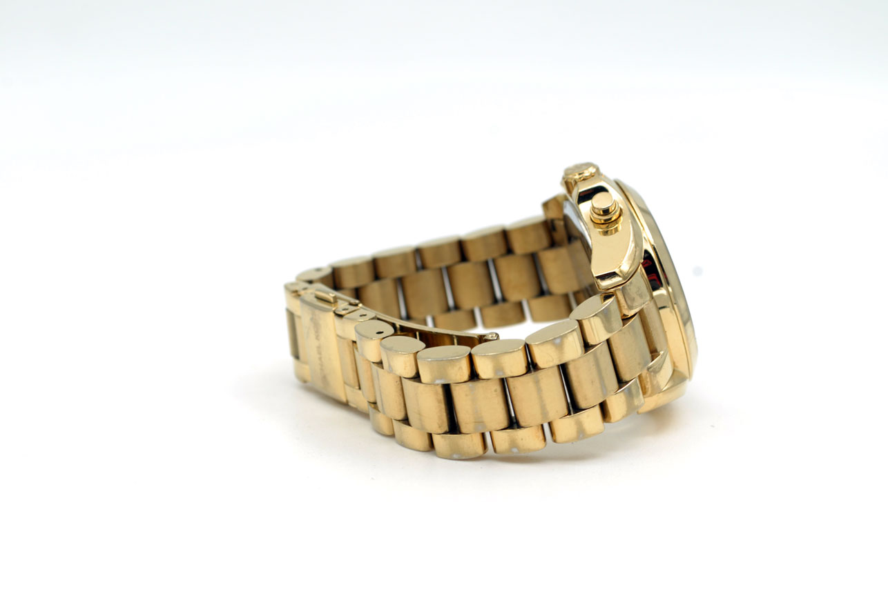 Hermoso MK para dama todo de acero inoxidable anodizado en dorado. Con dial dorado, fecha y maquina cronógrafo de 60mins